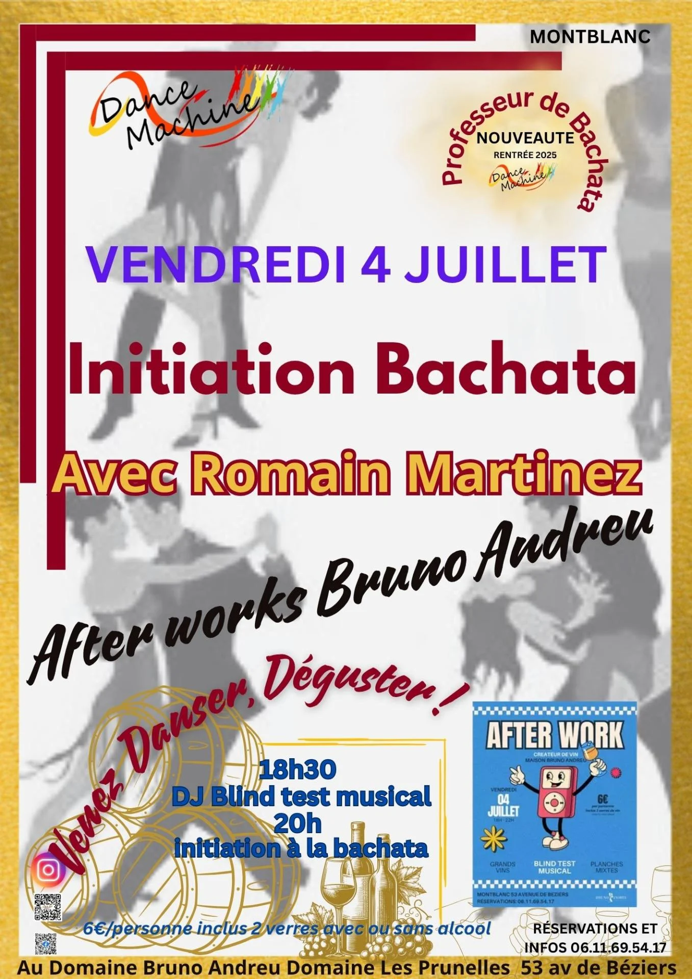 "Bonne nouvelle, Romain Martinez, prof de bachata, viendra animer les caves Bruno Andreu le vendredi 04 juillet vers 20h00, lors d'une initiation spéciale.. l'occasion pour découvrir son énergie, son style et sa passion.. avant qu'il ne rejoigne officiellement l'équipe de Dance Machine à la rentrée ! Venez danser et déguster avec nous dans une ambiance conviviale et rythmée..
